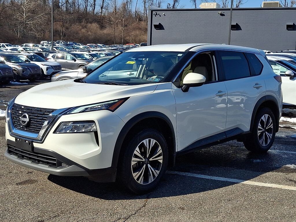 Certified. *BLUETOOTH*, *USB*, *SATELLITE RADIO*, *BACK UP CAMERA*, *BLIND SPOT MONITOR*, Rogue SV, 4D Sport Utility, 1.5L I3 Turbocharged DOHC 12V LEV3-ULEV50 201hp, CVT with Xtronic, AWD, Pearl White Tricoat, Light Gray Cloth, 18" Aluminum Alloy Wheels, Special Paint - Pearl White Tricoat. Check out all these great options Rogue SV, Certified Select Certified, 4D Sport Utility, 1.5L I3 Turbocharged DOHC 12V LEV3-ULEV50 201hp, CVT with Xtronic, AWD, Pearl White Tricoat, Light Gray Cloth, 18" Aluminum Alloy Wheels, Special Paint - Pearl White Tricoat, 4-Wheel Disc Brakes, 5.604 Axle Ratio, 6 Speakers, ABS brakes, Air Conditioning, Alloy wheels, AM/FM Radio, AM/FM radio: SiriusXM, Auto High-beam Headlights, Automatic temperature control, Black Splash Guards (Set of 4), Brake assist, Bumpers: body-color, Chrome Rear Bumper Protector, Cloth Seat Trim, Delay-off headlights, Driver door bin, Driver vanity mirror, Dual front impact airbags, Dual front side impact airbags, Electronic Stability Control, Emergency communication system: NissanConnect Services, First Aid Kit, Floor Mats w/1-Piece Cargo Area Protector, Four wheel independent suspension, Front anti-roll bar, Front Bucket Seats, Front Center Armrest, Front dual zone A/C, Front reading lights, Fully automatic headlights, Heated door mirrors, Illuminated entry, Illuminated Kick Plates, Knee airbag, Low tire pressure warning, NissanConnect featuring Apple CarPlay and Android Auto, Occupant sensing airbag, Outside temperature display, Overhead airbag, Overhead console, Panic alarm, Passenger door bin, Passenger vanity mirror, Power door mirrors, Power driver seat, Power steering, Power windows, Radio data system, Rear anti-roll bar, Rear Parking Sensors, Rear seat center armrest, Rear side impact airbag, Rear window defroster, Rear window wiper, Remote keyless entry, Speed control, Speed-Sensitive Wipers, Split folding rear seat, Spoiler, Steering wheel mounted audio controls, Tachometer, Telescoping steering wheel, Tilt steering wheel, Traction control, Trip computer, and Variably intermittent wipers.